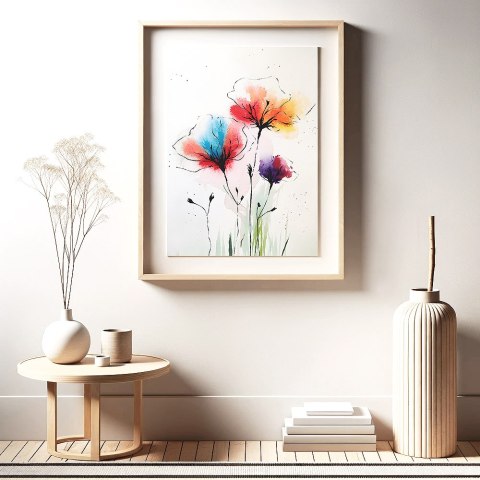 Nowoczesny i abstrakcyjny plakat z akwarelowymi kwiatami to żywiołowa dekoracja, która ożywi każde wnętrze. Pasuje do stylu skandynawskiego, minimalistycznego czy boho, doskonale sprawdzi się w salonie, sypialni czy biurze.